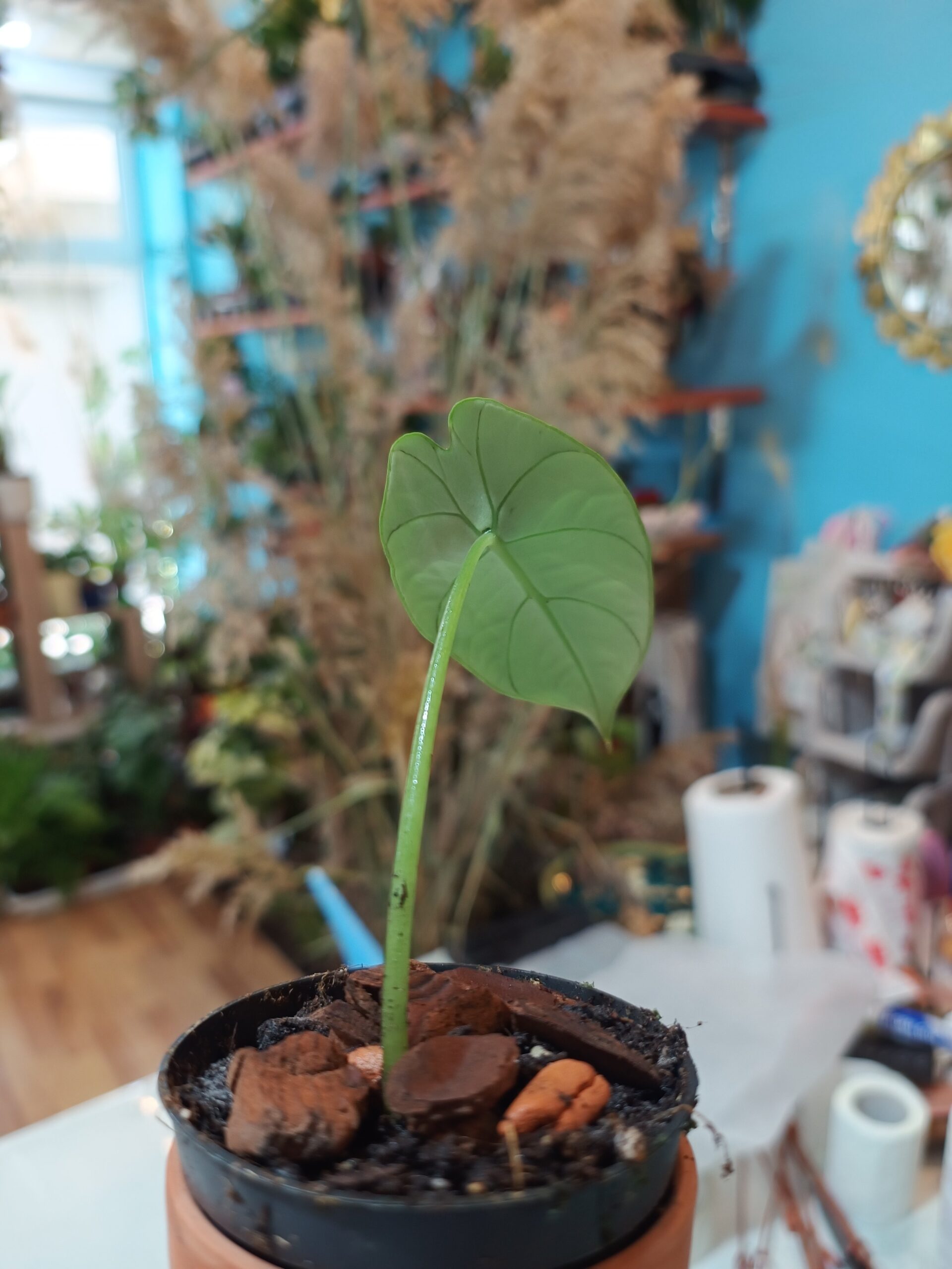 Alocasia sp. Grey/Red baby plant in ghiveci 9 cm. Soi extrem de greu de gasit🦄🦄, in ultimă poze se vede planta matura. Pentru colecționari!