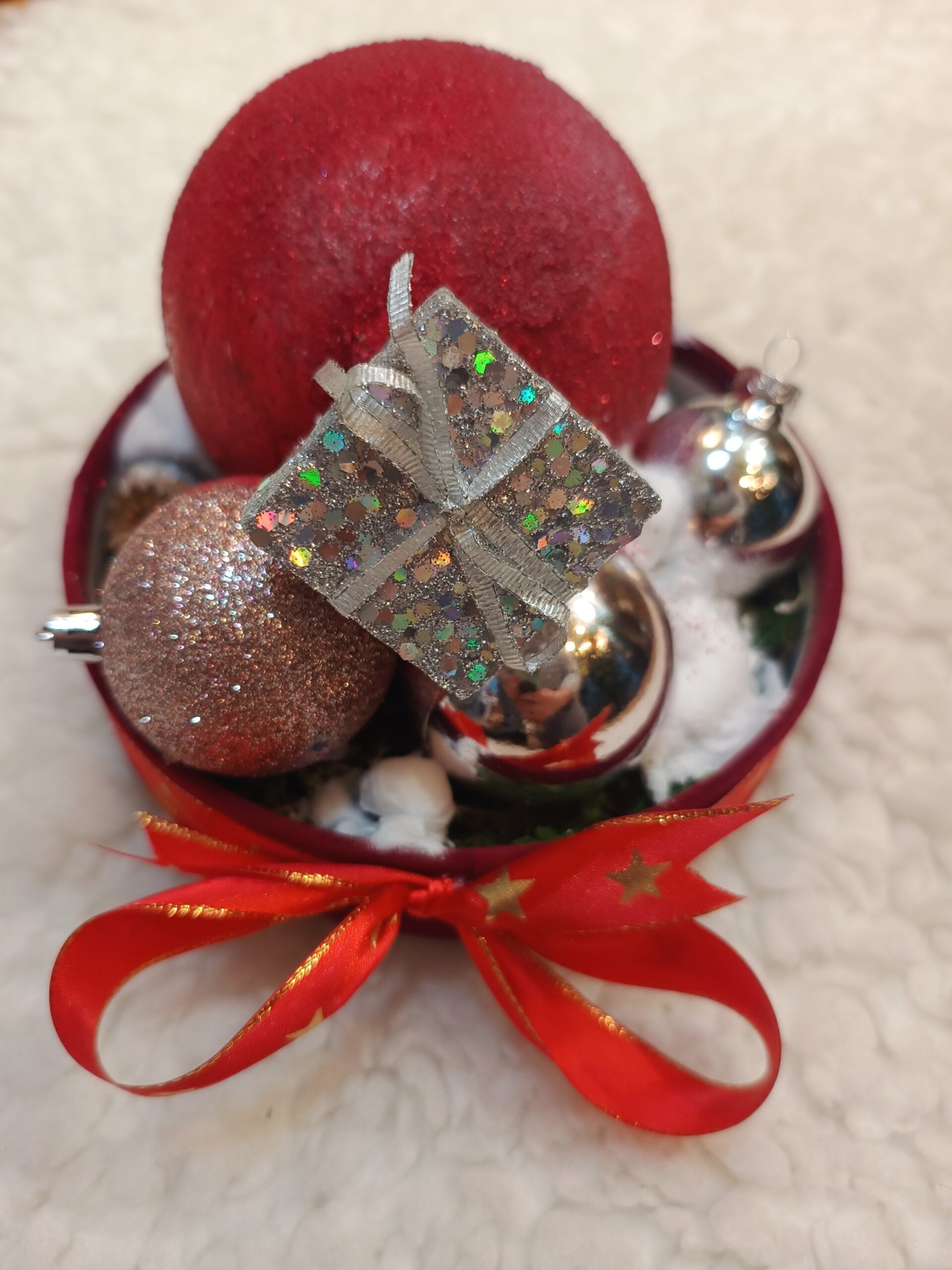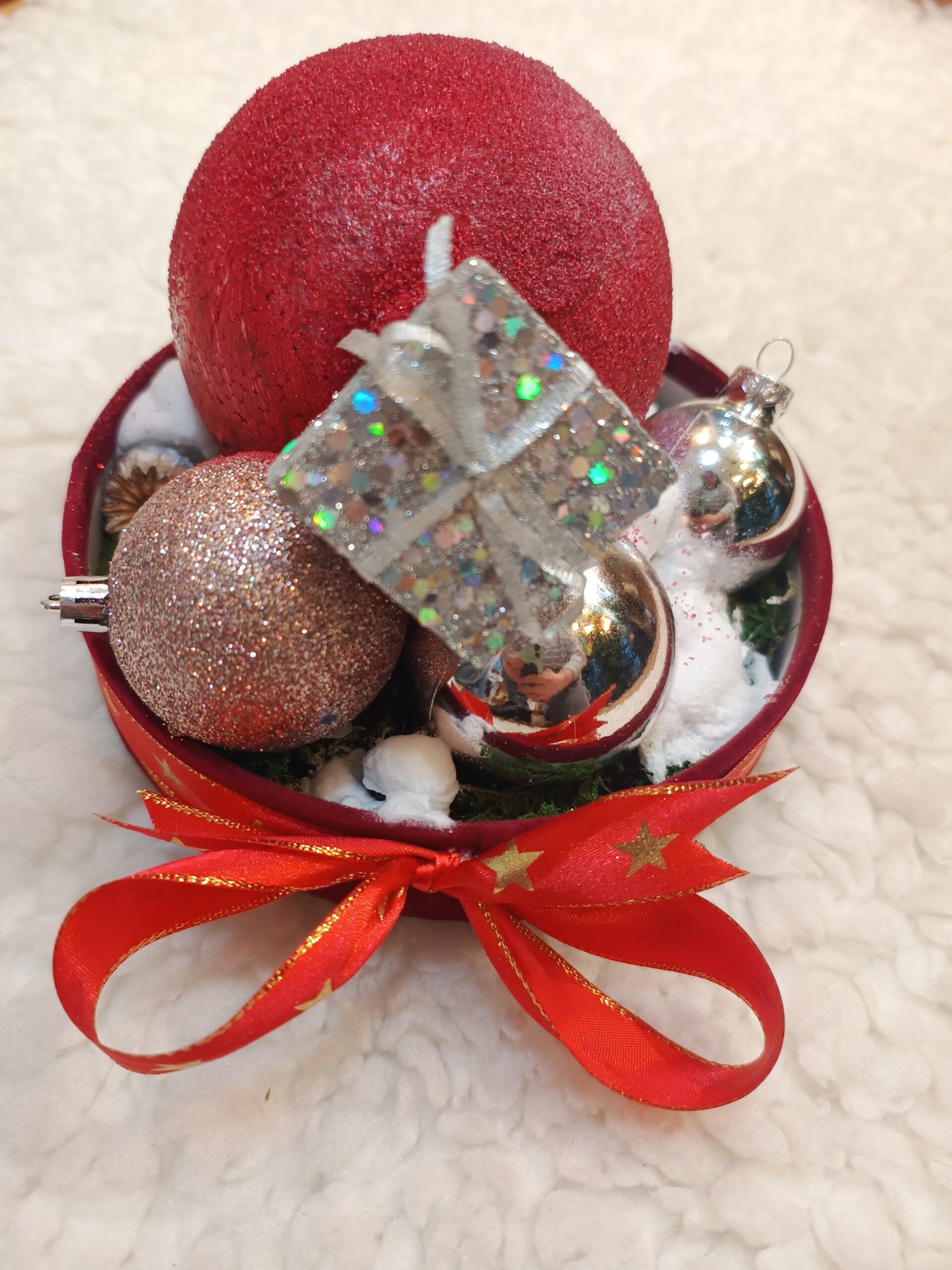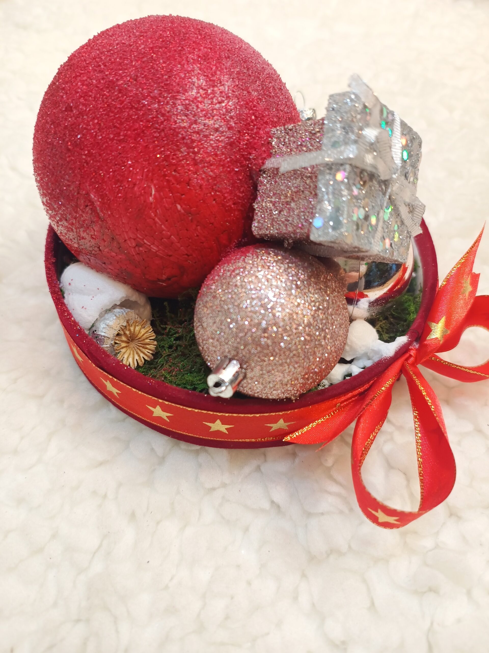 [trustindex no-registration=google] [reviews_rating]Aranjament de Crăciun cu globuri. Diametru aproximativ 25 cm.