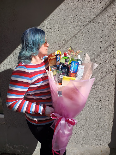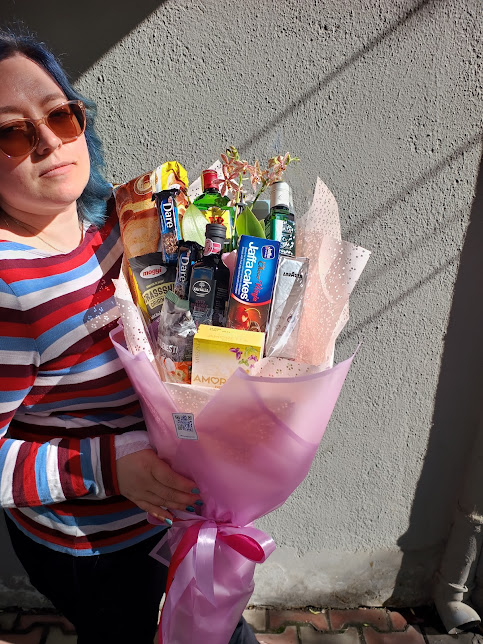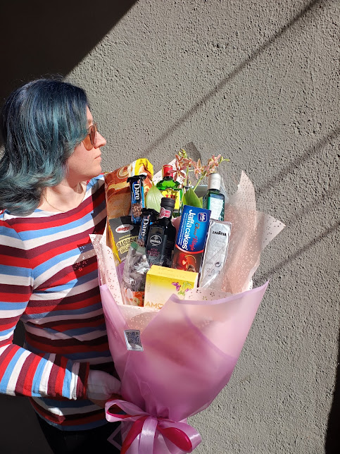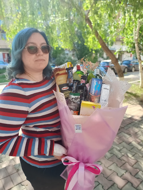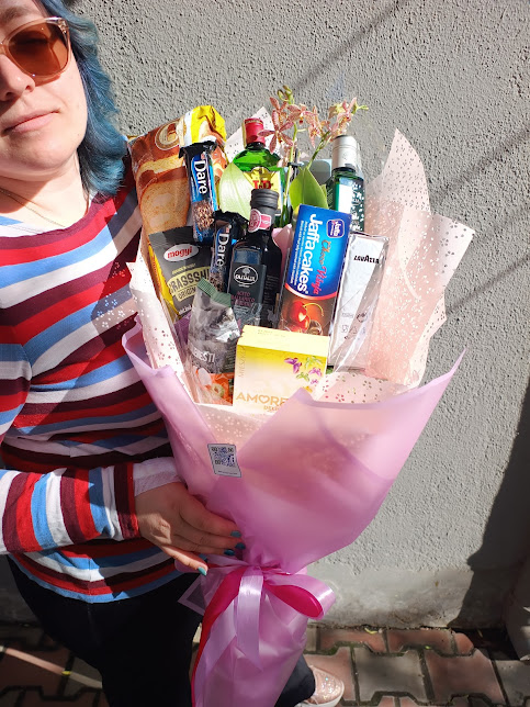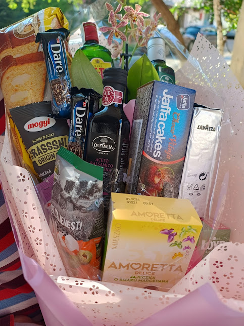 Un buchet diferit, care include și produse alimentare, poate fi o surpriză delicioasă și inovatoare pentru un cadou special. Iată propunerea noastra pentru un astfel de buchet cadou: