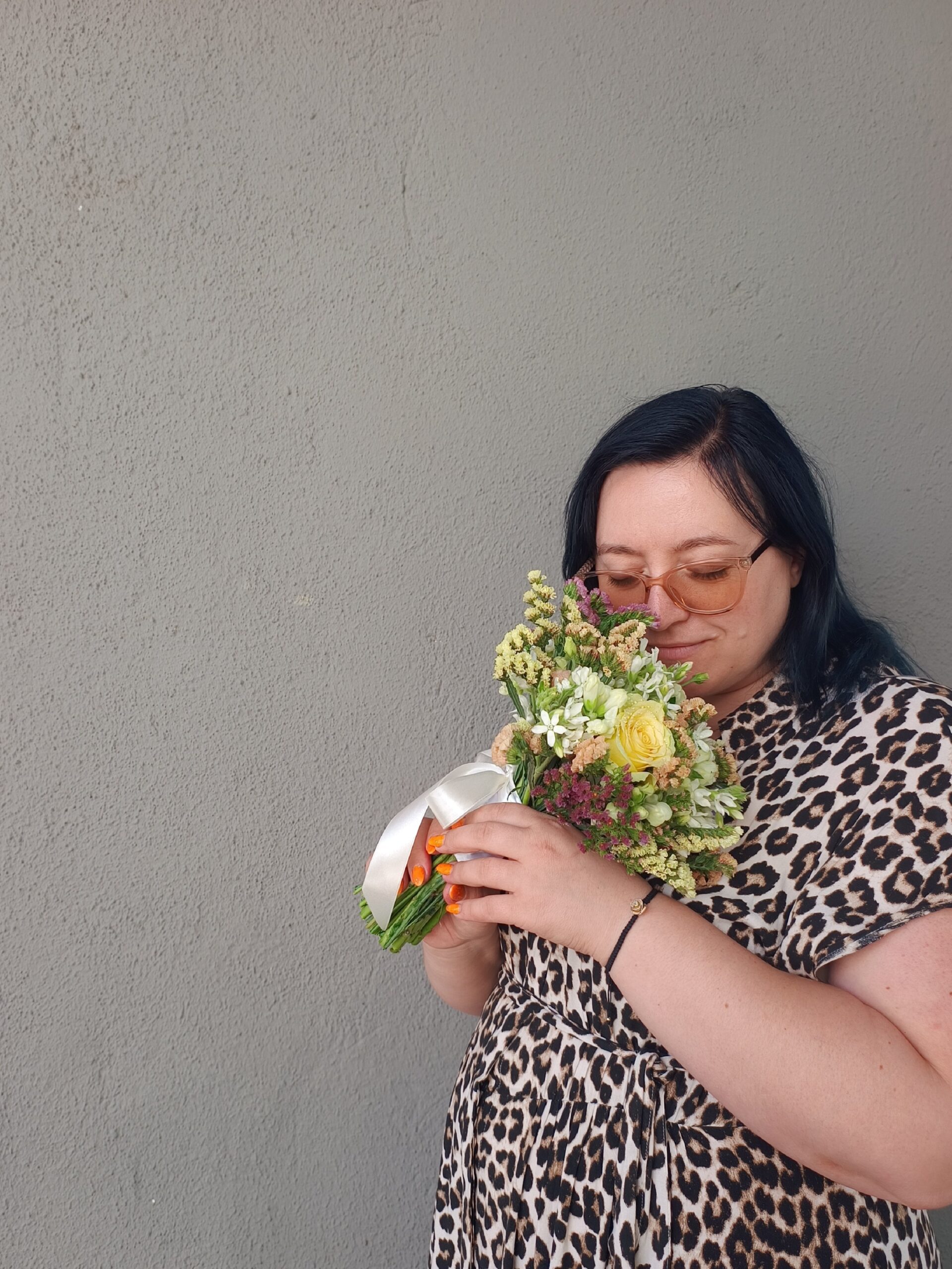 Buchet delicat in nuanțe de peach și crem, cu flori de vară. Ușor, aerisit, delicat și foarte rezistent la căldură și manipulare.