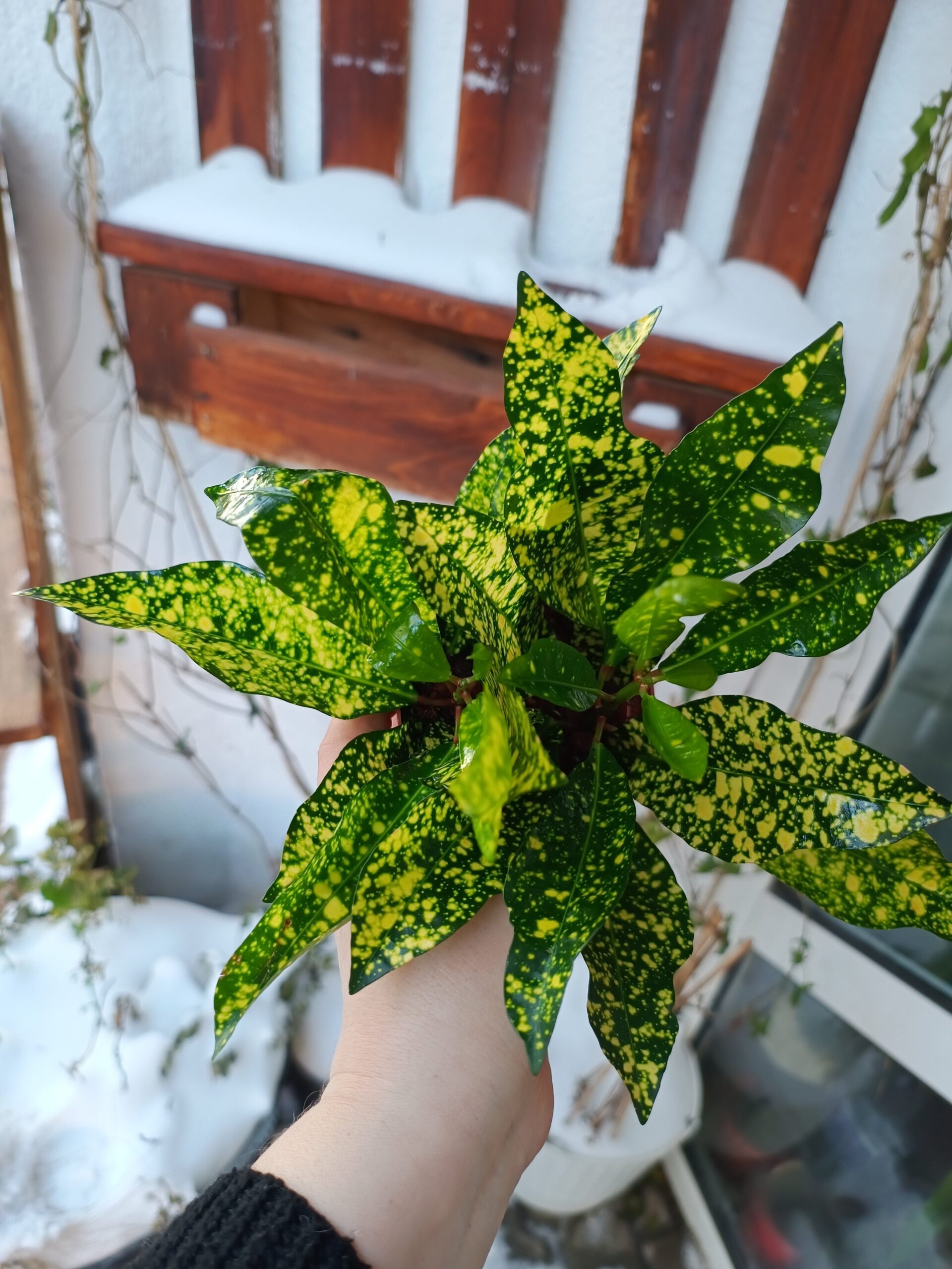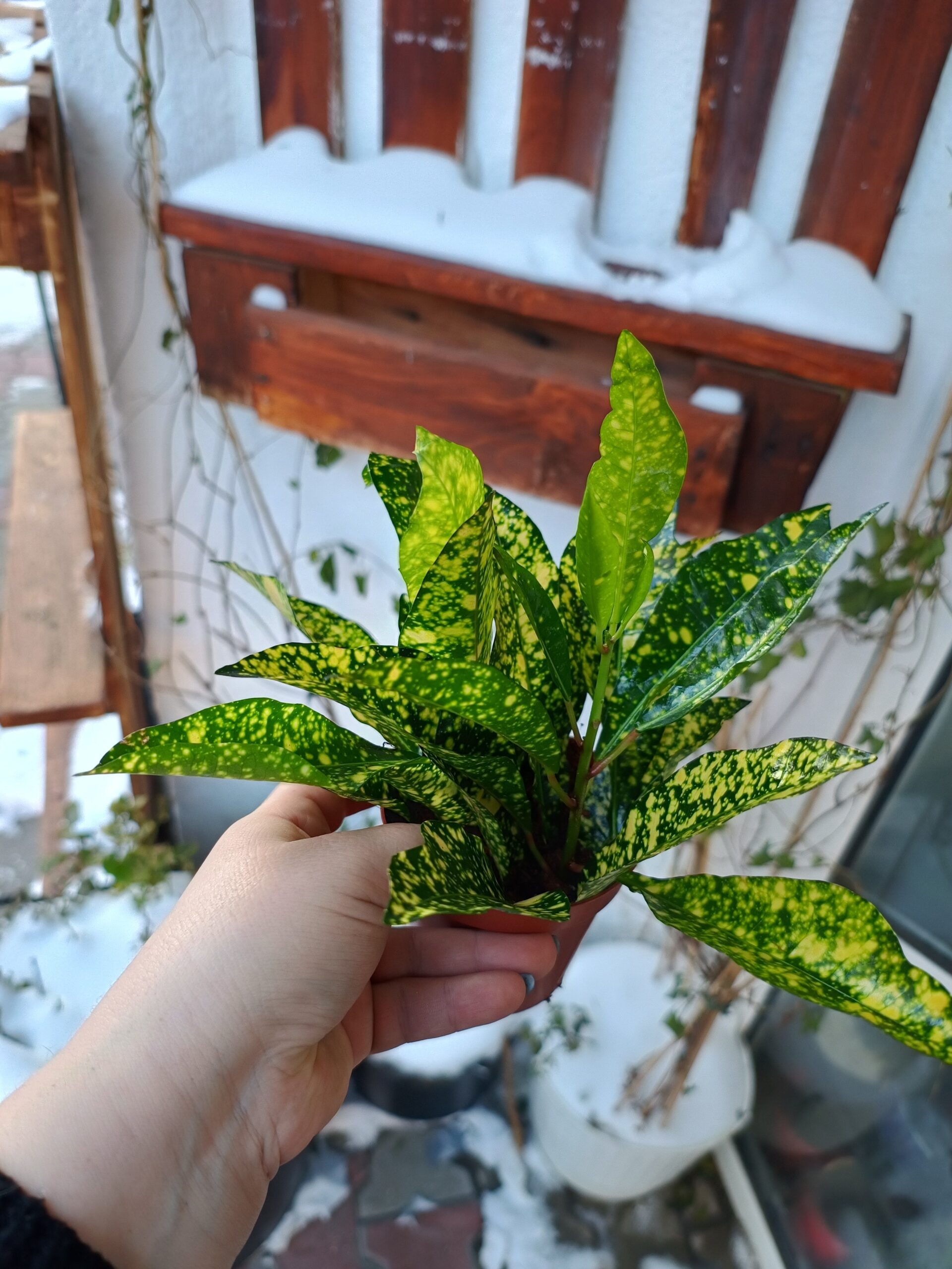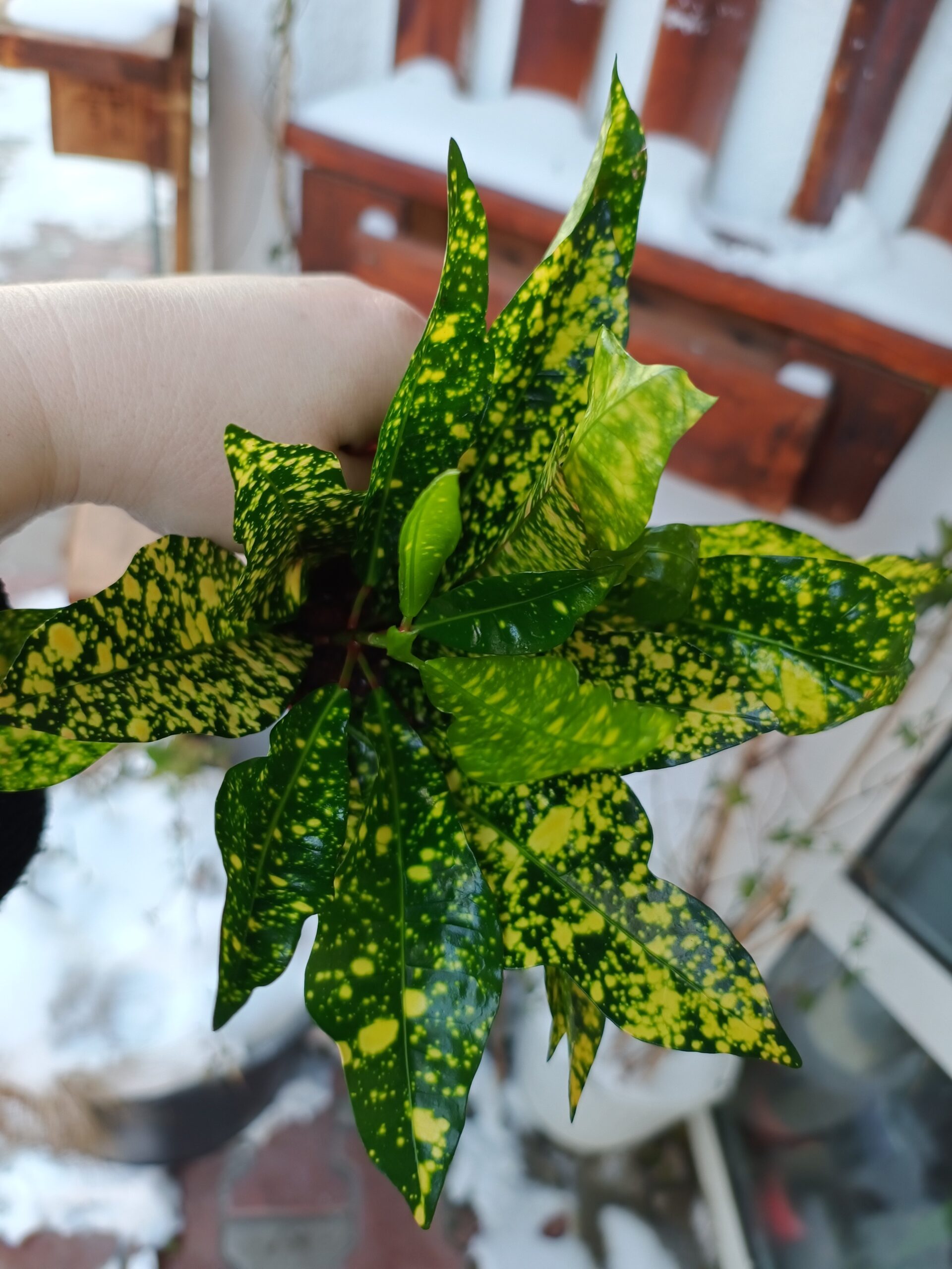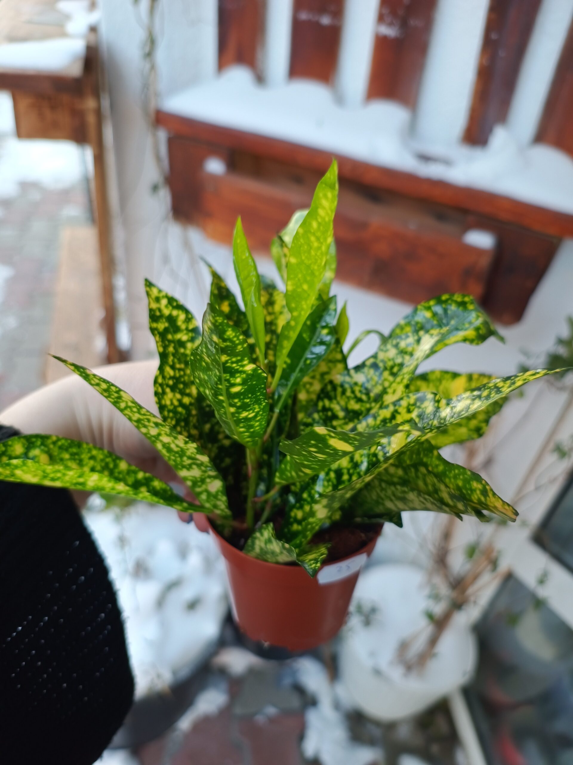 Codiaeum sau croton, planta de interior cu frunze variegate, in ghiveci de 9 cm, înălțime totală aproximativ 30 cm. Plante ușor de îngrijit, purifica aerul și oxigenează încăperea.