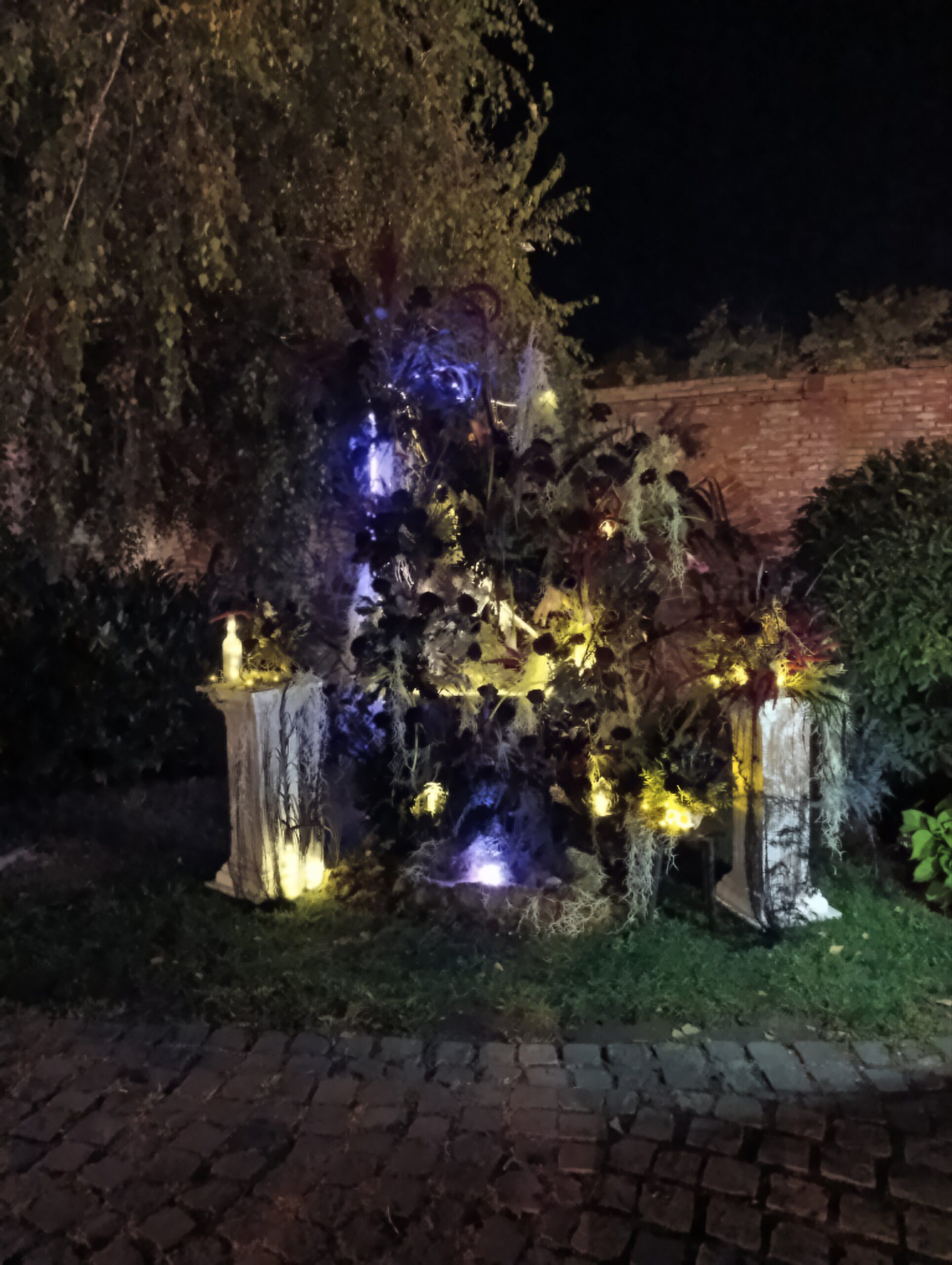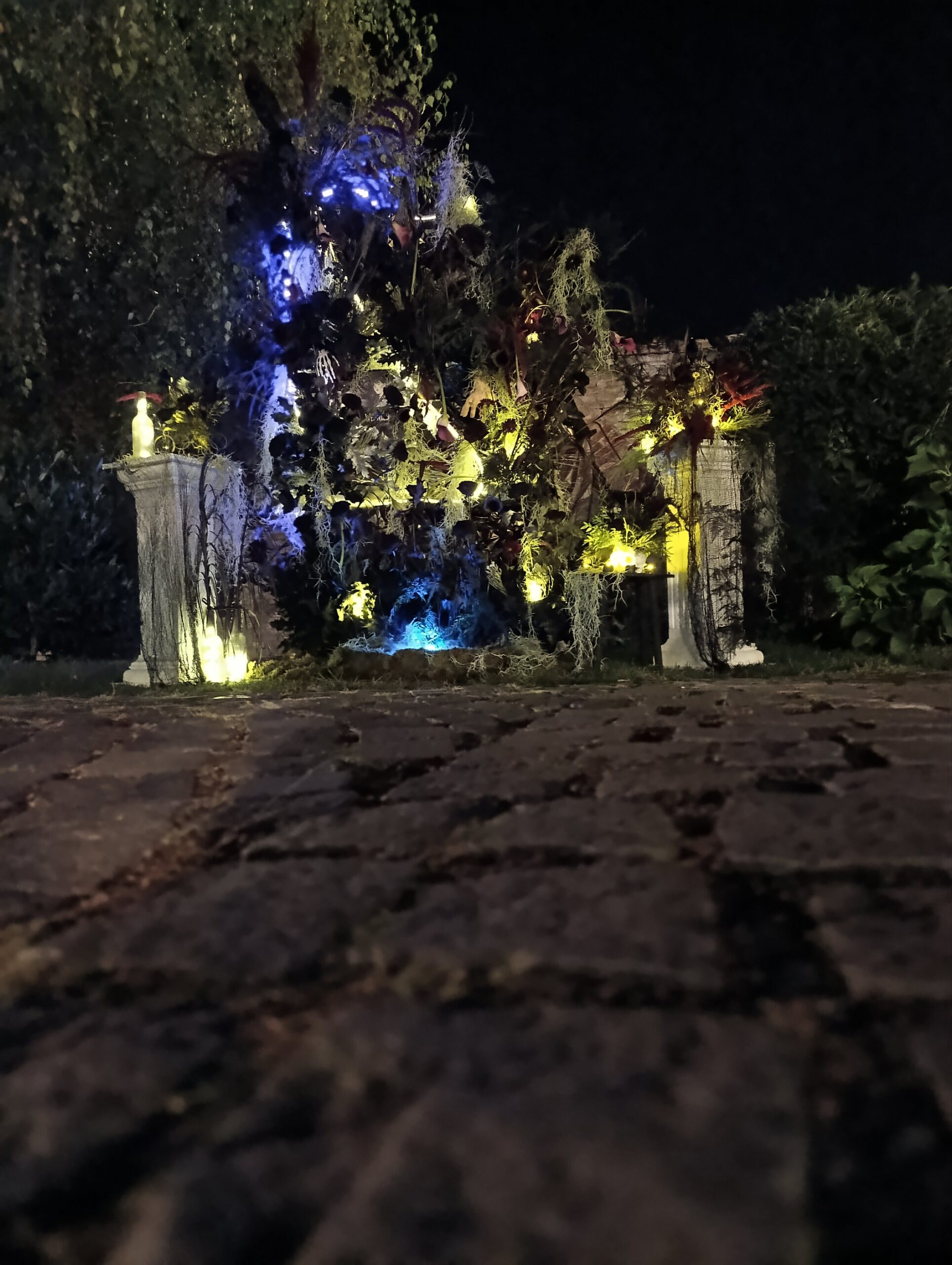 Decor eveniment cu tema Wednesday Addams, flori naturale, lucrat în cadrul festivalului Magia Florilor din Târgu Mureș. Pretabil pentru petreceri aniversare sau photocorner Halloween. Un adevărat spectacol de lumini și umbre, te atrage și te aruncă în lumea tenebroasă a celebrului personaj.
