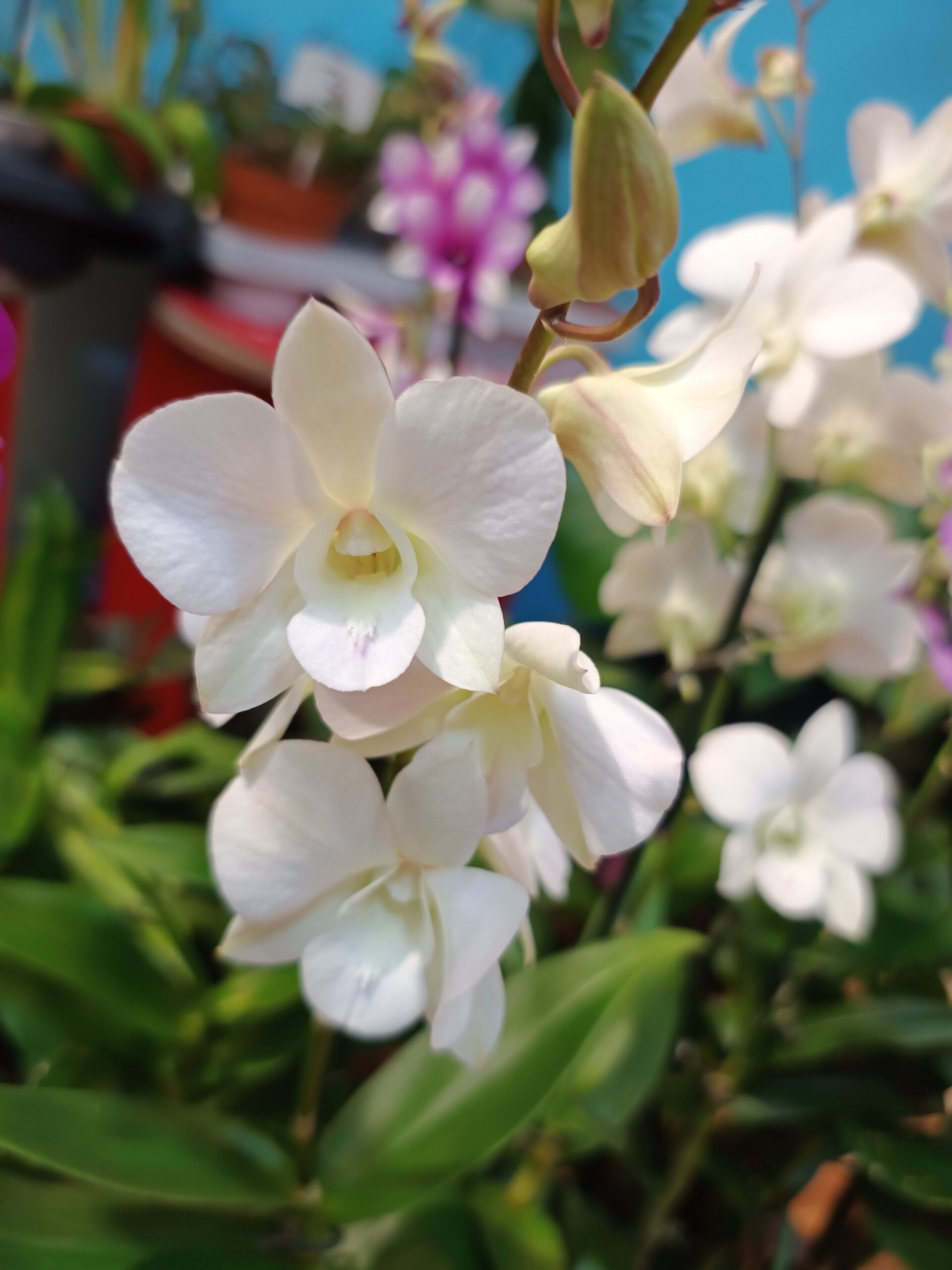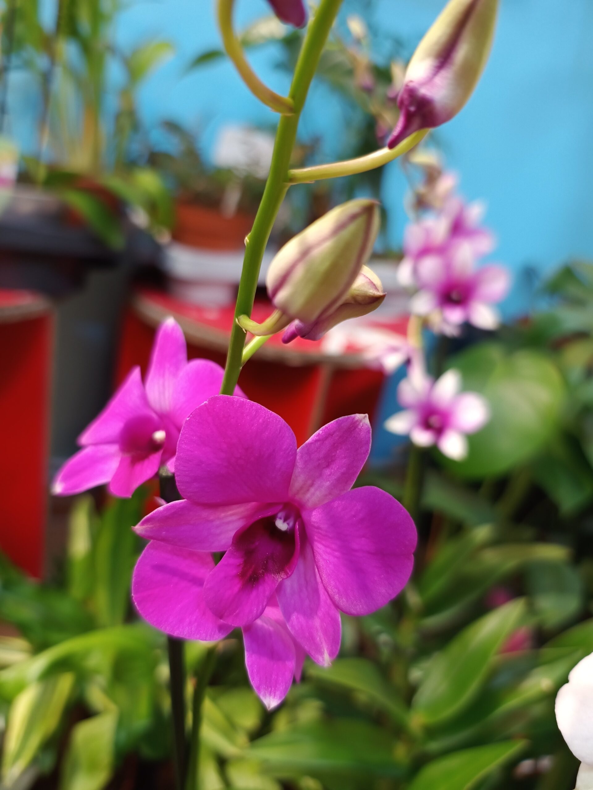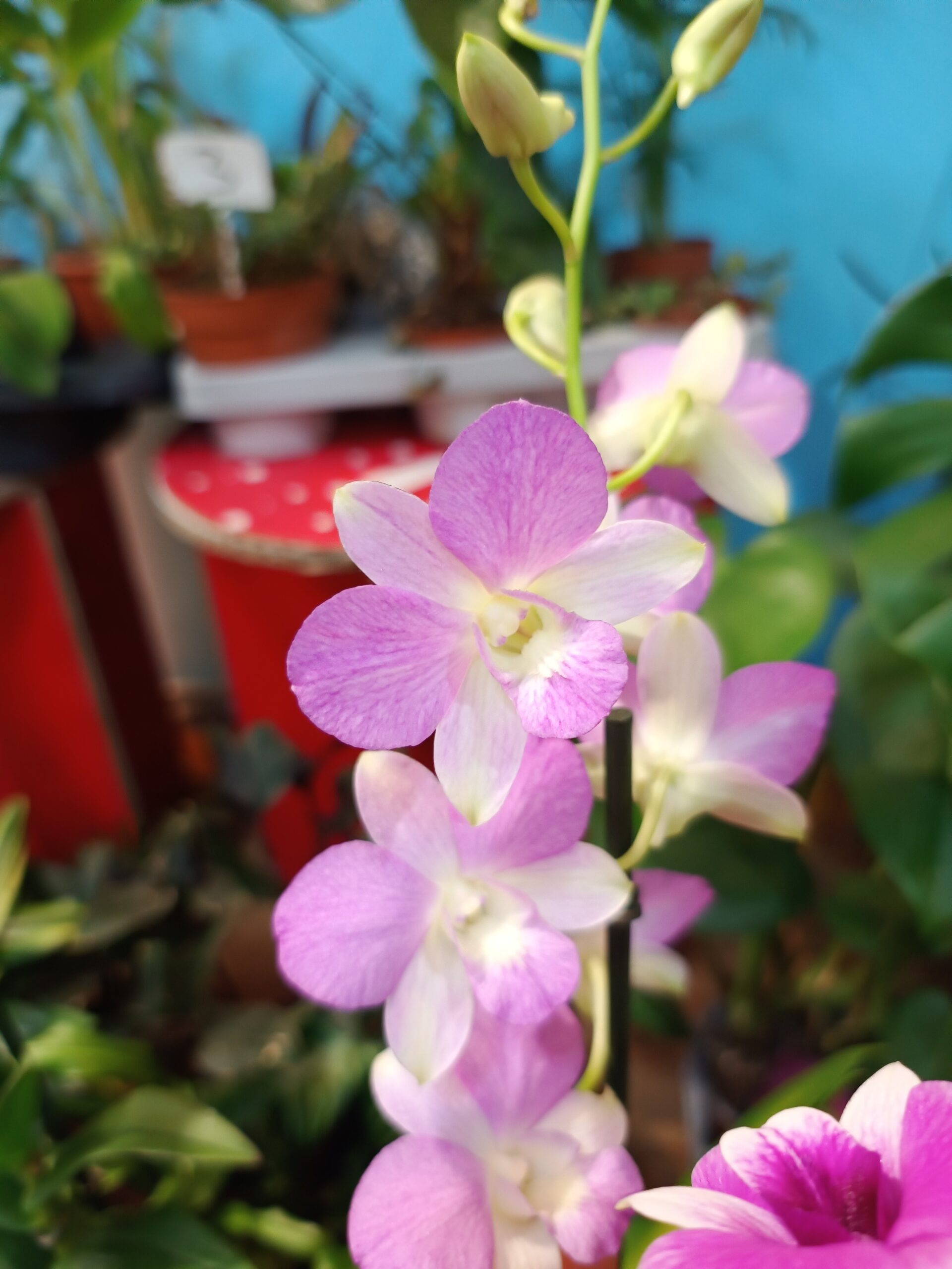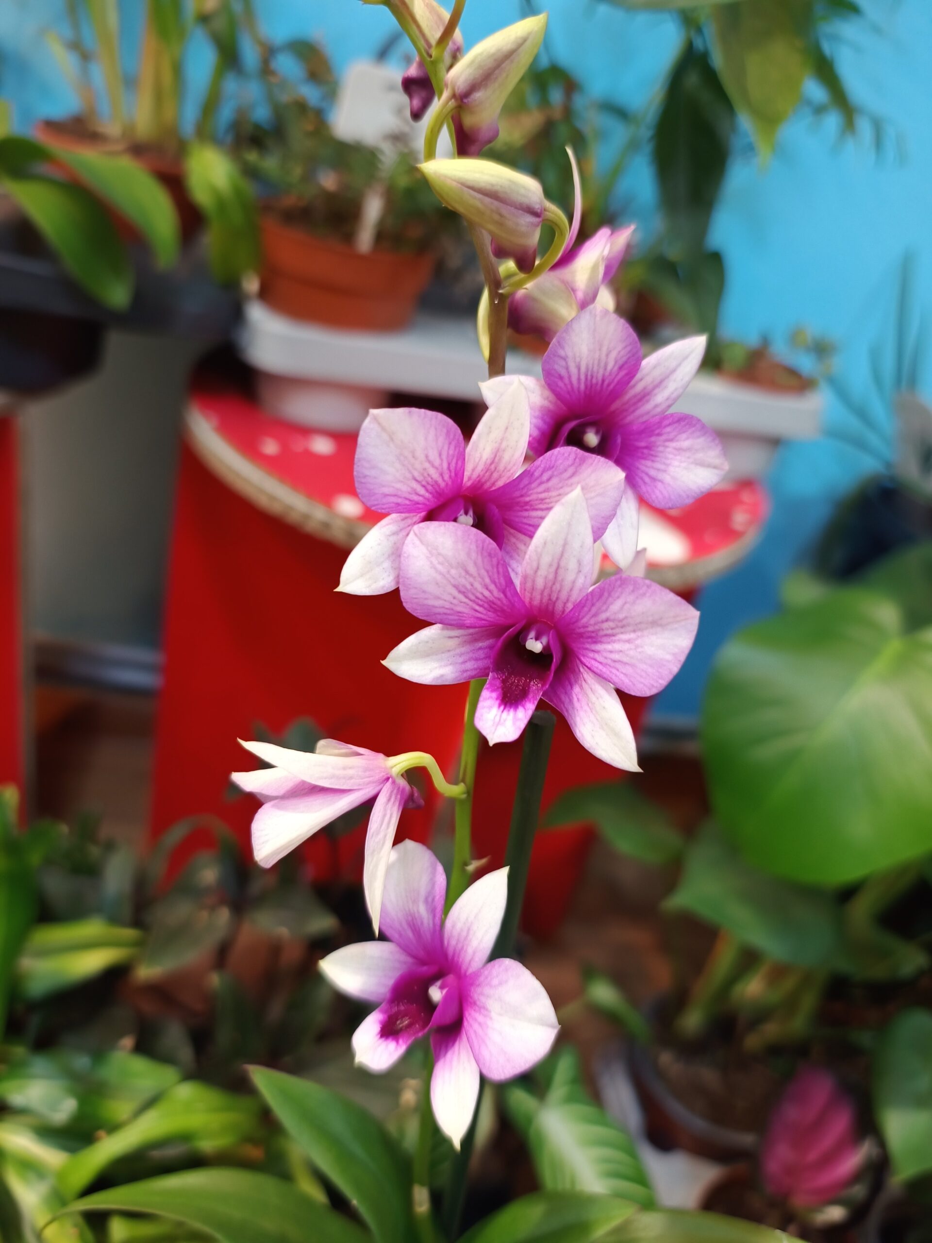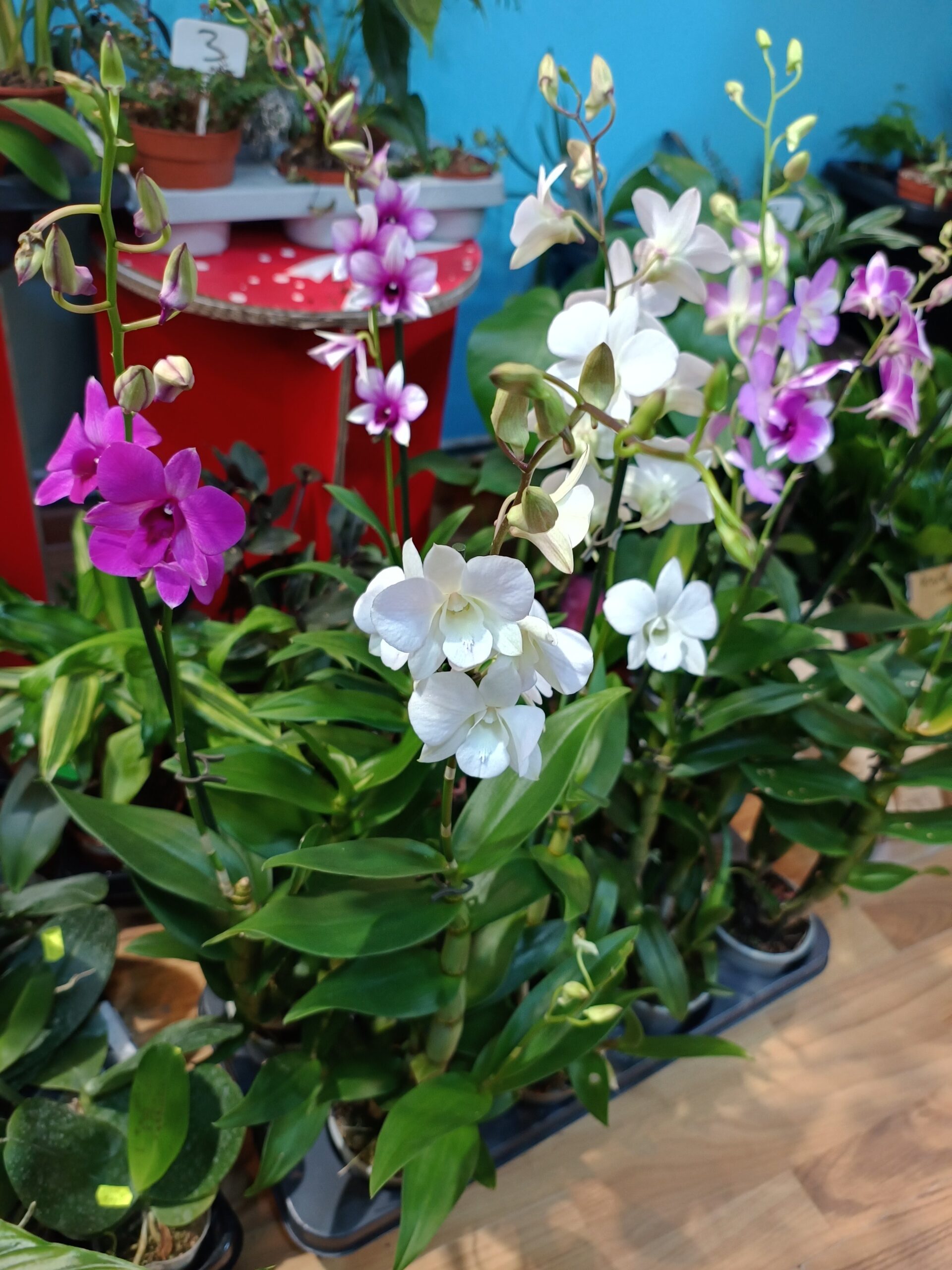 Dendrobium Phalaenopsis cu 1 tija florala, culori superbe, exemplare bogate, in ghiveci de 10 cm, înălțime totală aproximativ 90 cm.