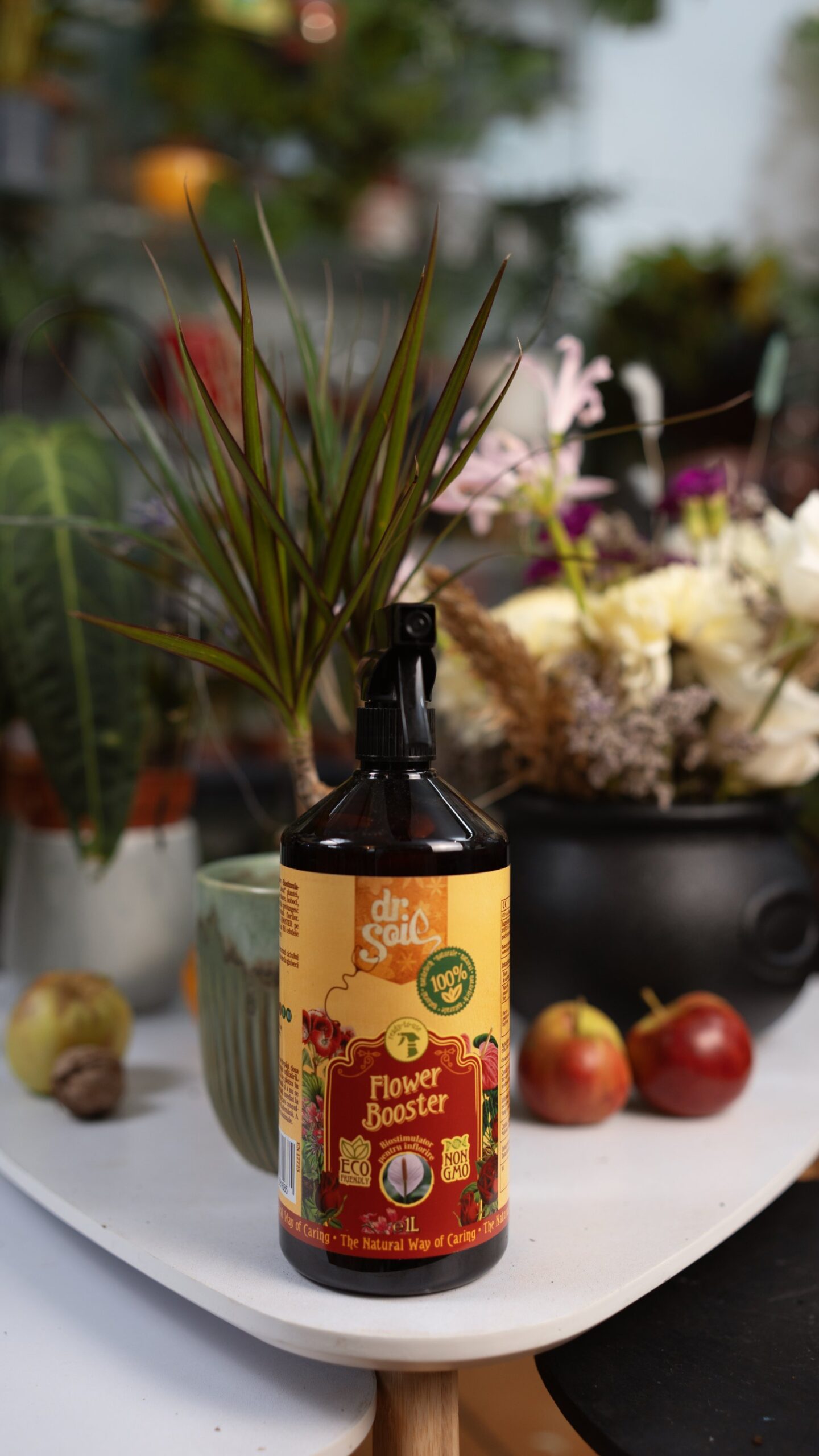 Oferă florilor tale un plus de energie și culoare cu Dr. Soil Flower Booster, biostimulatorul natural care intensifică înflorirea și prelungește durata de viață a florilor. Formula sa unică, 100% naturală, bazată pe extracte vegetale, aminoacizi și microelemente organice, hrănește planta în profunzime și stimulează procesele naturale de formare a bobocilor și florilor.