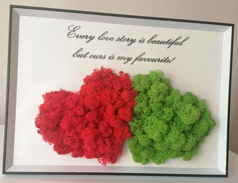 Tablou realizat cu licheni decorativi, rama de dimensiune A4. Putem personaliza mesajul conform dorintei clientului.