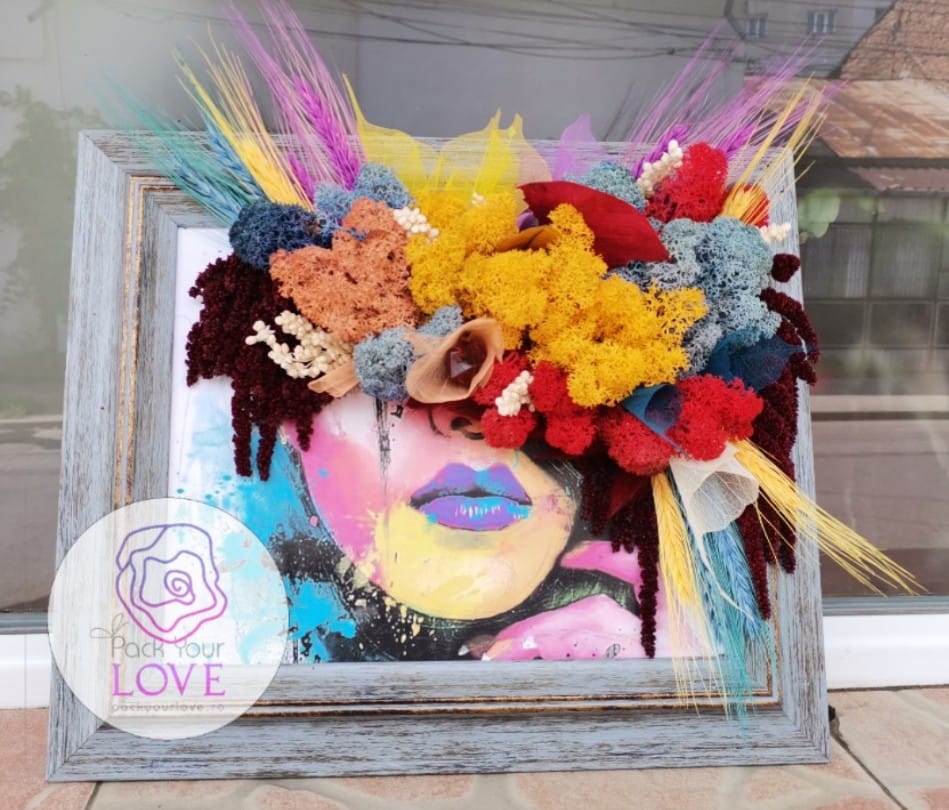 Tabloul vine cu instructiuni de pastrare si garantie 1 an, ambalat frumos cu funda de cadou, gata pregatit pentru a fi daruit. Nu necesita ingrijiri speciale, udare, lumina, substrat etc.