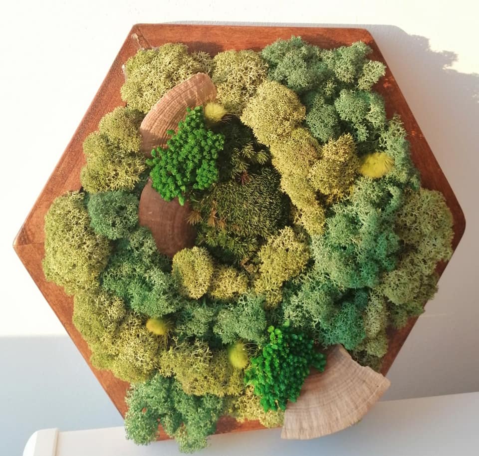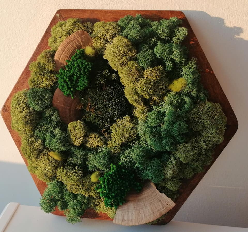 Tablou realizat manual cu muschi bombat, licheni stabilizati si plante conservate. Rama este realizata pe comanda, din lemn, are dimensiunea 26*30 cm. Lichenii au o durata de viata de 10-15 ani, nu necesita udare, pulverizare, tuns, lumina. Au numeroase beneficii pentru sanatate. Mai multe informatii despre ce sunt lichenii, beneficii, durata de viata, ingrijire etc gasiti pe site la sectiunea blog. Atentie! Tabloul nu are agatatoare.