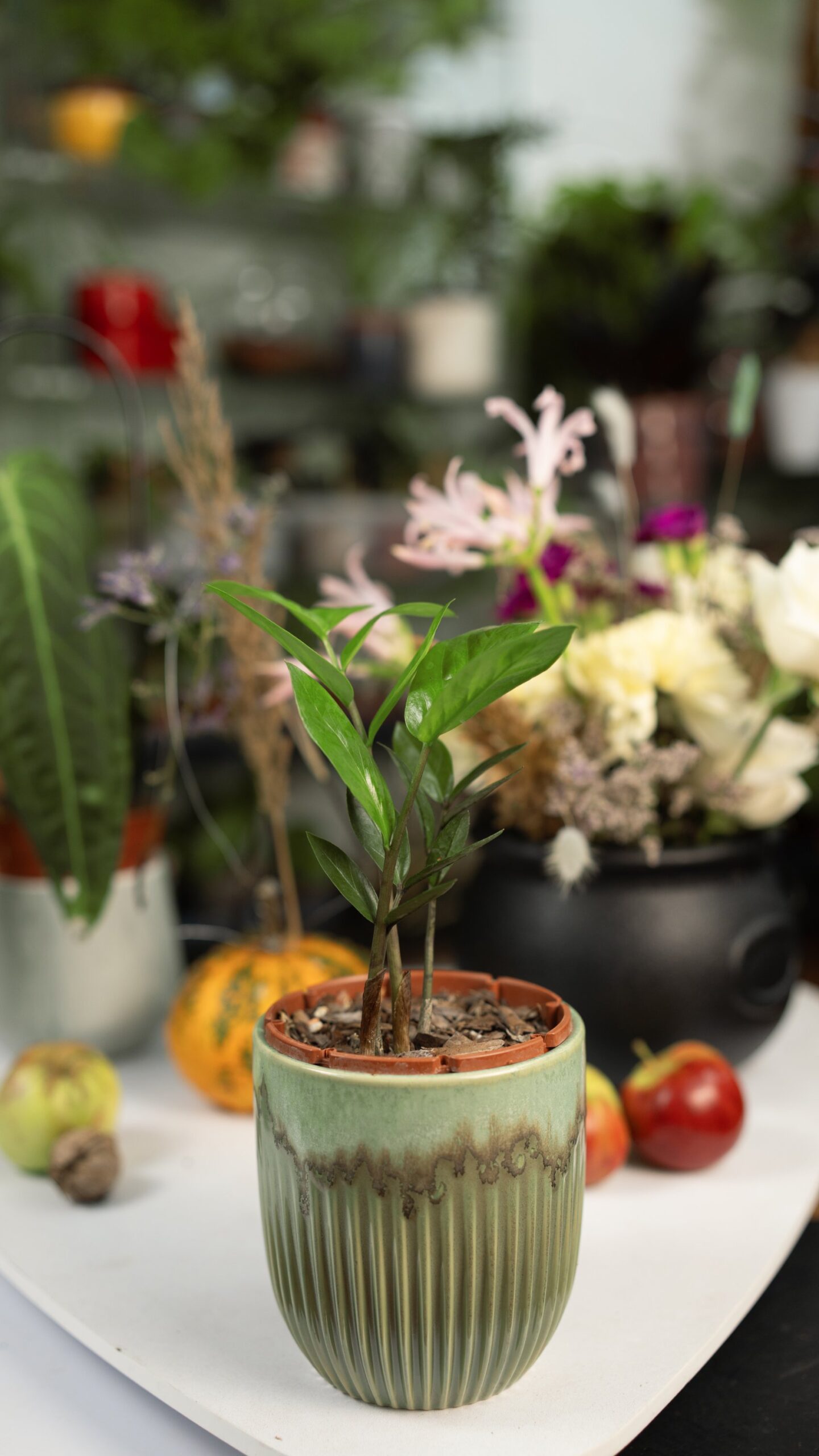 Zamioculcas aduce o notă de ordine, echilibru și calm, transformând orice colț într-o oază verde, sofisticată și contemporană.